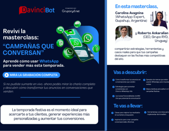 Se realizó recientemente la masterclass “Campañas que conversan”, organizada por DavinciBot, plataforma de comunicación empresarial omnicanal que integra canales digitales y telefónicos, permitiendo…