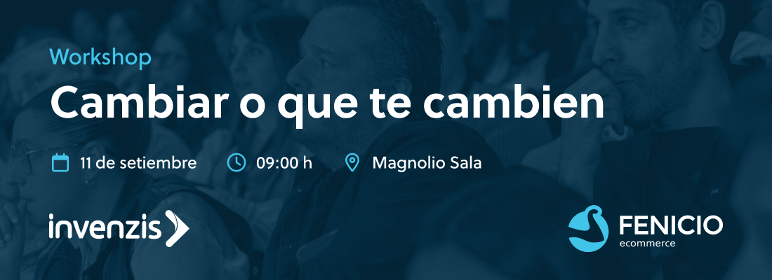 Cambiar o que te cambien Un workshop de Invenzis y Fenicio eCommerce 📅 Jueves 11 de setiembre 📍 Magnolio Sala 🎟 Evento abierto a todo público, sin costo En